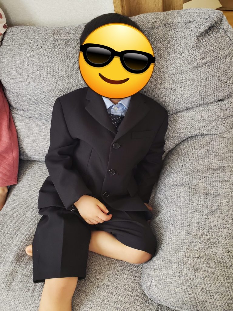 卒園式・入学式に着ていくスーツに袖を通し、バッチリな感じだったのでご満悦な模様(笑)